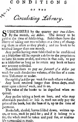 12. ^ a b c d e f g h i j k l Charles K. Bolton (February 1907). "Circulating Libraries in Boston, 1765-1865". Publications of the Colonial Society of Massachusetts. 11. Retrieved September 3, 2010.
