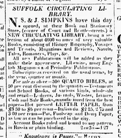 • Suffolk Circulating Library; corner of Court and Brattle St.; N.S. Simpkins, J. Simpkins[29]