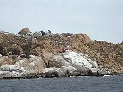 Islotes Pájaros, southernmost islet. | 29°35.2′S 71°31.7′W / 29.5867°S 71.5283°W | Fl.(2)W. period 10s fl. 0.5s, ec. 2.4s fl. 0.5s, ec. 6.6s | 131 40 10 | ISOLATED DANGER BRB, tower; | 13. | Obscured by N. islet 158°- 162°. |