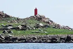 No. 2. | 32°45.0′S 71°29.2′W / 32.7500°S 71.4867°W | Fl.(3+1)Y. period 20s fl. 0.5s, ec. 1.5s fl. 0.5s, ec. 1.5s fl. 0.5s, ec. 4.5s fl. 0.5s, ec. 10.5s | 27 8 3 | Yellow metal post, X topmark; | 12. | |