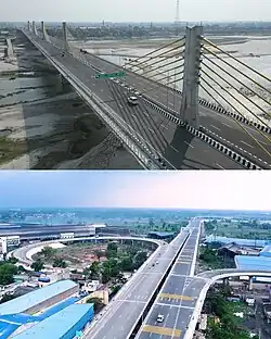 Kacchi Dargah–Bidupur Bridge is six lanes of roadway and pedestrian pathways each side that is currently under construction. It will span the river Ganges, connecting Kacchi Dargah in Patna and Bidupur in Hajipur in the Indian state of Bihar.