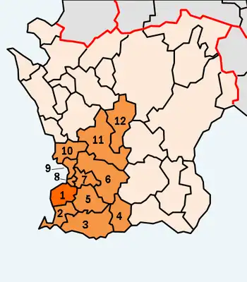 | Municipality | Population | Area[1] | Density[2] | Part |