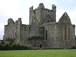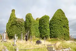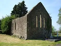 tradition of church now ruined belonging to Franciscan Friars purportedly founded by the sept of McFall (Macfaull) evidence lacking; also suggested as nuns or Dominican Friars |