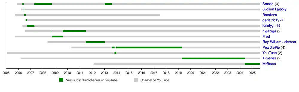 Timeline of the most-subscribed YouTube channels (May 2006 – present)