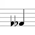 Double flat A double flat lowers the pitch of a note by two semitones. |