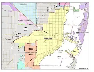 This is a list of neighborhoods in Miami in Miami-Dade County, Florida, United States. Many of the city's neighborhoods have been renamed, redefined and changed since the city's founding in 1896. As such, the exact extents of some neighborhoods can differ from person to person. The following is the list of all the city's major neighborhoods, including any corresponding sub-neighborhoods within them.