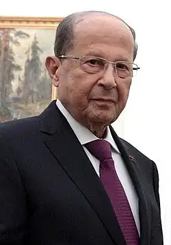 The Aoun family is a Maronite family that was recently established as political via Michel Aoun's daughters.[2] Aoun's second child, Claudine Aoun, married politician and former brigadier general, Chamel Roukoz. The third, Chantal, is married to Gebran Bassil, whom she met at an FPM conference in Paris in 1996. He served as a minister in different cabinets, and succeeded Aoun as president of the Free Patriotic Movement in 2015.[3] Michel's nephew, Alain Aoun, is a Member of Parliament, elected in 2009, 2018 and 2022.