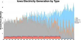 1. ^ a b "Electricity Data Browser, Net generation for all sectors, Iowa, Fuel Type-Check all, Annual, 2001–24". www.eia.gov. Retrieved April 8, 2025.