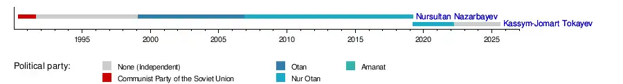 — | 20 March 2019 | 12 June 2019 | 84 days | Nur Otan (until March 2022 renamed to Amanat) |
