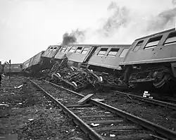 July 28 – United States – A 9-car Pennsylvania Railroad train from Harrisburg to Philadelphia, carrying baseball fans to a Philadelphia-Pittsburgh game, derailed at Steelton. Three cars were in use—the rest were reserved for passengers boarding later—and those three cars fell into the Susquehanna River valley, one landing in the river. The crash killed 19 people and injured 119. A railroad spokesman said the track was apparently out of alignment.[43][44][45]