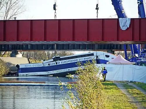 17 August – Germany – The Intercity-Express from Frankfurt to Paris hit a truck that had slid onto the railway near Lambrecht. The first two carriages derailed and ten people were injured, one seriously.[44]