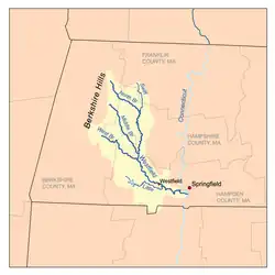 All Massachusetts rivers flow to the Atlantic Ocean. The list is arranged by drainage basin from north to south, with respective tributaries indented under each larger stream's name, arranged travelling upstream along the larger stream.