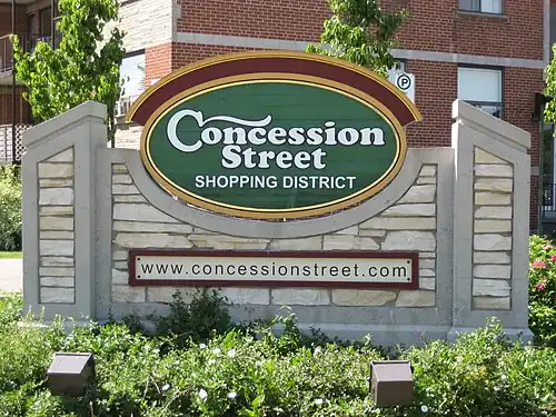 • Concession Street, the oldest settlement area on Hamilton Mountain and once an African-American neighbourhood settled by escaped slaves from the United States who came to the area along the Underground Railroad. Originally known as Stone Road and changed to Concession Street in 1909, it was a separate community from the lower city and known as Mount Hamilton. By 1891 land north of Concession Street were annexed by the city and were serviced with water, sewers and sidewalks. Aberdeen Avenue in the Lower City was originally known as Concession Street.[2]