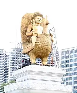 93 Statue of God Skanda on a peacock God Skanda Sihanoukville Cambodia 6.18 m (20.3 ft) A copper statue on a 6.18 m (20 ft) base. 12.36 m (41 ft) in total.[49] 2022 10°36′25″N 103°30′58″E / 10.60695°N 103.51620°E / 10.60695; 103.51620 (God Skanda on a peacock)
