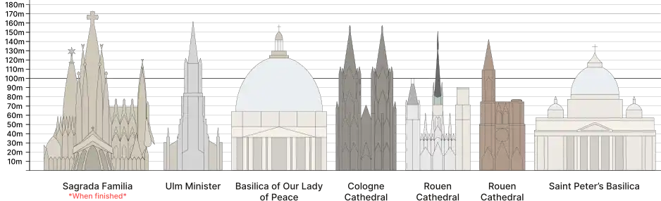 - ^ height of the "Torre de la Mare de Déu" of the Basílica i Temple Expiatori de la Sagrada Família; still under construction