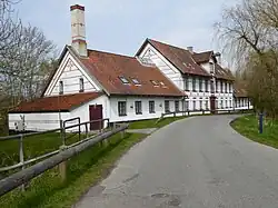 Residential wing from 1831. The watermill has been demolished. The surviving building was listed in 1980.[2]