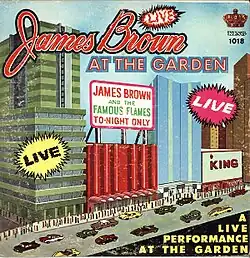 Live at the Garden is a 1967 live album by James Brown and The Famous Flames. It was recorded on January 14, 1967 in the middle of a ten-day engagement at the Latin Casino in Cherry Hill, New Jersey - Brown's first at an upscale nightclub. Like most of Brown's live albums, overdubbed crowd noise was added to the original recording for its LP release. It included one new song, "Let Yourself Go", which was recorded after hours at the casino; it appeared on the album disguised as a live recording. Although Live at the Garden peaked at #41 on the Billboard album chart,[1] it came to be overshadowed in Brown's catalog by his next live album, Live at the Apollo, Volume II, recorded later the same year and released in 1968.