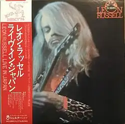 Live in Japan is a live album by singer and songwriter Leon Russell. The album was recorded two live tour sessions. The first record section is a 1973 tour show at Budokan in Japan on November 8, 1973. The second recorded section is from a 1971 tour show in Sam Houston Coliseum. While the album had some of Leon's new hits, like "Tight Rope" and "A Song for You," the album did not chart in the top 200. His early live album Leon Live peaked at #9 on the U.S. charts. The album was first released as a vinyl LP by Shelter Records. Live in Japan was re-released on CD by Omnivore Recordings in 2011 and again in 2013 with bonus tracks. The album was by produced by Leon Russell, Nobuya Itoh, Peter Nicholls and Denny Cordell.[2] [3] The new CD releases were after Leon recordings earned six gold records. He received two Grammy Awards from seven nominations. In 2011, he was inducted into both the Rock and Roll Hall of Fame and the Songwriters Hall of Fame.[4] One of his biggest early fans,[5][6] Elton John, said Russell was a "mentor" and an "inspiration". They recorded their album The Union in 2010,[7][8] which earned them a Grammy nomination.[9]
