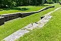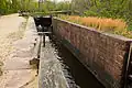 Lock 27 is a curious combination of the two specifications, having the culverts inside the masonry, but the upper gate below the breast wall. This is because of multiple contractors working on the lock after a lapse of time.[27]