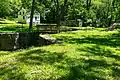 The 1828 design originally filled the lock chamber through the use of culverts in the lock masonry. The wicket, i.e. large paddle valve, hidden in the masonry recess where the upper gate fit in, would be opened, and water would flow through the lock masonry to three openings in the lock chamber. Both sides of the lock had these, so there would be a total of 2 wickets, and 6 openings. The upper gate is above the breast wall.[24][25] Most of the wicket openings in the upper gate recess have been closed with masonry, but one wicket at Violettes Lock is still intact as of 2013 (see photo). Note that modern replacement gates in locks 1–23, have the wickets in the gates, since the original wickets in the lock masonry are inoperable. This system of routing water through the masonry was abandoned due to the tendency for debris to clog the opening.[26]