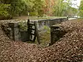 The Goose Creek locks were 0.2 miles below Edwards Ferry (Lock 25), in section 51 used for traffic coming from Goose Creek on the Virginia shore.[7] It allowed boats from the Goose Creek and Little River Navigation Company to enter. Only one Goose Creek boat was documented to enter the C&O canal, and there is no documentation of a C&O boat entering Goose Creek. The lock was eventually converted into a waste weir.[9] The Goose Creek lock is a staircase lock or combine lock:[10] two locks with no intervening pound or basin, the upper gate of the lower lock being the same gate as the lower gate of the second lock. It was perhaps the only such lock on the C&O Canal.