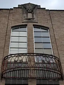 Indianaola Junior High School window detail with the caption TAHGAHJUTE