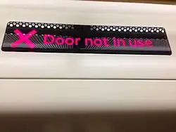 To prevent accidental pressing of emergency alarms, there are flaps over the alarm buttons next to wheelchair spaces.