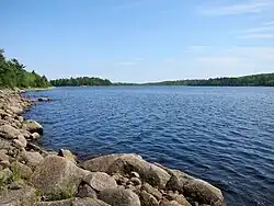 Long Lake Provincial Park is home to a number of lakes and ponds. The eponymous Long Lake, with an area of 154 hectares (380 acres), is the largest. It was created in the 19th century when a wooden dam was built on McIntosh Run, causing rising water levels to connect two pre-existing lakes, Cocked Hat Lake and Beaver Lake. The resultant Long Lake has a maximum depth of 30 metres.[1]