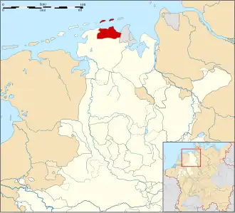 ![]() Map of the Lordships Esens, Stedesdorf and Wittmund around 1560 | |||||||||||