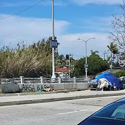 Los Angeles Homeless Services Authority (LAHSA) is the lead agency responsible for coordinating housing and social services for the homeless in Los Angeles County.[1] LAHSA allocates funds and administers contracts with regional agencies that provide emergency, transitional and permanent housing, and other services that assist homeless individuals.[2] In the 2022-2023 fiscal year, LAHSA had an annual budget of US$845,367,023 (equivalent to $908,332,158 in 2024).[3] LAHSA is governed by a 10-member board of commissioners, five of whom are appointed by the Mayor of Los Angeles, while the remaining five are appointed by the Los Angeles County Board of Supervisors.[4][2]
