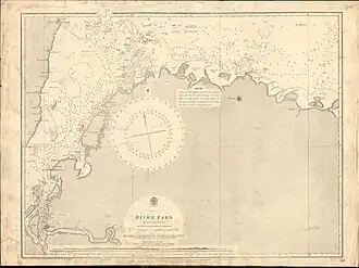 On returning to Europe, Tardy de Montravel took command of the brig Boulonnais. Assigned to the Brazil station, this vessel was responsible for carrying out the hydrographic survey of the northern coast of Brazil , that of Guyana, and the mouth and course of the Amazon, which it ascended for 1000 km. This cartography work, carried out from 1842 to 1845, resulted in the development of an atlas of fourteen maps and the writing of two nautical documents. The publication of this hydrographic material earned its author the rank of lieutenant commander in 1846. These documents were to constitute a major element of documentation during the negotiations to delimit the border between French Guiana and Brazil concluded in 1856.[2] In 1847, Captain de Montravel was appointed commander of the corvette L'Astrolabe, which joined the naval station on the coast of Argentina during the Platine War . He was responsible for bringing back to mainland France the treaty concluded with this country on August 31, 1850.