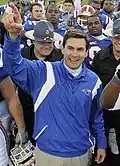 In 2001, following the Western Athletic Conference losing 8 of its members and the creation of the Mountain West Conference,[65] the Bulldogs accepted an invite to the WAC. Louisiana Tech went on to win the WAC championship in its first year of membership, earning Bicknell conference Coach of the Year honors.[66] Louisiana Tech played Clemson in the 2001 Humanitarian Bowl, the program's first postseason appearance since 1990.[67] Tech's star player that year was quarterback Luke McCown, who still owns several of the school's passing records.[68] During his tenure in Ruston, Bicknell's teams defeated AQ-conference teams Alabama, Michigan State and Oklahoma State. 22 of his players also went on to be drafted or signed by National Football League teams. Bicknell was fired by Louisiana Tech following a 3–10 campaign in 2006.[69][70]