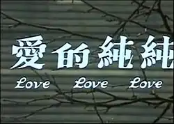 Love, Love, Love (simplified Chinese: 纯纯的爱; traditional Chinese: 純純的愛; pinyin: chún chún de ài) is a Taiwanese film, released in 1974 by Central Motion Pictures Corporation (中央電影事業股份有限公司) and spoken in Mandarin. It stars Charlie Chin as Li Ai-fang (李愛芳) and Brigitte Lin as Lin Chuen-chuen (林純純). Chin Chuan (金川) is co-starring in this film. It was written, composed, and directed by Liu Chia-chang.