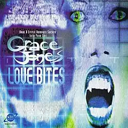 "Love Bites" is an uptempo dance track.[1] Jones sings the song from the perspective of a vampire, perhaps alluding to the theme of her 1986 feature film Vamp. The song was released as a non-label promo-only single to promote the Sci-Fi Channel's Vampire Week, which consisted of a series of vampire-themed films aired on the channel in early November 1996.[1] As the song was released for a promotional use only, and was not commercially available, it did not chart, and has not been since included on any Grace Jones hits compilations.