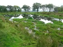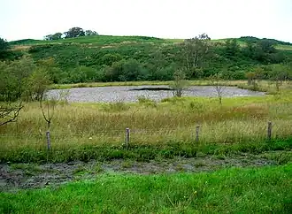 Marked on Ordnance Survey maps as "The Lochs", it was locally known as the Lowes Loch and lies on the old "Lowes Lands".[1] Four lochs may have once been present, a small one in front of Lows Cottage, a second along to the west of the surviving loch, and a smaller fourth one, now partly drained by a deep ditch, sitting next to the older of the two Lochlands Farms ruins. Before the Cadgerford Burn was deepened the lochs level would have been higher and may have once drained to the west and east.