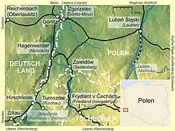 Lubań Śląski–Leśna railway is a single-track, non-electrified local significance railway line[2] with a length of 11.155 km.[1][3] The line is located in the Lower Silesian Voivodeship, within the Lubań County area, in Poland. It belongs to PKP Polskie Linie Kolejowe Railway Line Plant in Wrocław and the Railway Line Plant in Wałbrzych.[4]