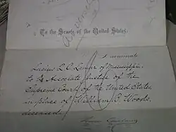 - ^ a b Angelillo, Joseph (May 10, 2021). "The "Unrepentant Secessionist": The Nomination of L.Q.C. Lamar and the Retreat from Reconstruction". Journal of Supreme Court History. 46 (1): 42–61. doi:10.1111/jsch.12256. ISSN 1059-4329. S2CID 236658364.