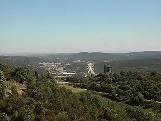 View south from the Fort de Bellegarde past the Panissars blockhouse. La Junquera is at the left center and Black Mountain (Mont Roig) is on the center horizon.