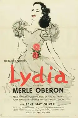 Lydia is a 1941 American romantic drama film directed by Julien Duvivier and starring Merle Oberon as Lydia MacMillan, a woman whose life is seen from her spoiled, immature youth through bitter and resentful middle years, until at last she is old and accepting. The supporting cast features Joseph Cotten, Edna May Oliver and George Reeves. The picture is often referred to as a remake of Duvivier's Un carnet de bal (1937), which starred Marie Bell as the leading character, although the two films actually share few plot elements.[1]