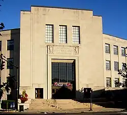 The Lynn Memorial City Hall and Auditorium is a large Art Deco building that defines the civic heart of Lynn, Massachusetts. The building serves three functions: it houses the city's principal offices, including the mayor's office and the chambers of the city council; it memorializes the city's fallen in the nation's military conflicts; and it houses a large public performance space, with a seating capacity over 2,000. It is located at Three City Hall Square.[2]