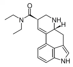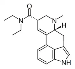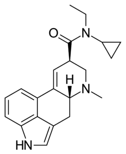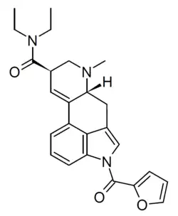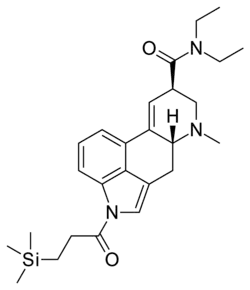 6. ^ a b Hoffman AJ, Nichols DE (September 1985). "Synthesis and LSD-like discriminative stimulus properties in a series of N(6)-alkyl norlysergic acid N,N-diethylamide derivatives". Journal of Medicinal Chemistry. 28 (9): 1252–1255. doi:10.1021/jm00147a022. PMID 4032428.