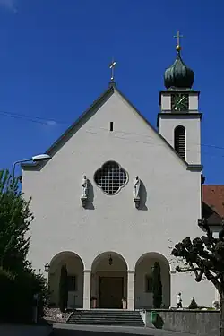 From the 2000 census, 2,066 or 80.9% were Roman Catholic, while 209 or 8.2% belonged to the Swiss Reformed Church. Of the rest of the population, there were 41 members of an Orthodox church (or about 1.61% of the population), there were 2 individuals (or about 0.08% of the population) who belonged to the Christian Catholic Church, and there were 26 individuals (or about 1.02% of the population) who belonged to another Christian church. There were 65 (or about 2.55% of the population) who were Islamic. There were 2 individuals who were Buddhist and 3 individuals who belonged to another church. 66 (or about 2.59% of the population) belonged to no church, are agnostic or atheist, and 73 individuals (or about 2.86% of the population) did not answer the question.[9]
