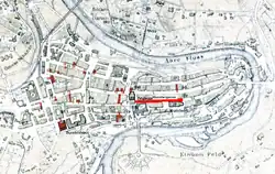 Kirchgasse was the original name for a both Junkerngasse and a portion of Münstergasse. In 1576 the name was only applied to the section that ran past the cathedral, as the Junkerngasse section had been renamed Edle Gasse ("Noble Lane") and would become Junkerngasse in the 17th century. In 1967 the name became unofficial when it was renamed to be part of Münstergasse.[5]