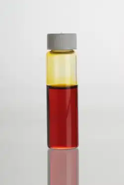 Mānuka (Leptospermum scoparium) essential oil in a clear glass vial