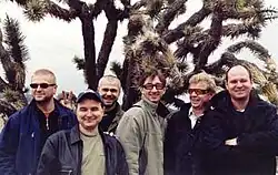 Mňága a Žďorp in 2016. From left: Tibitanzl, Nekuža, Mikel, Fiala, Knor, Koudelka