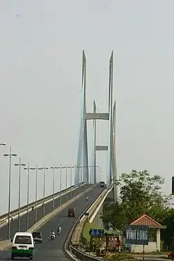 The Mỹ Thuận Bridge (Vietnamese: Cầu Mỹ Thuận) is a cable-stayed bridge over the Mekong river, connecting Cái Bè District of Tiền Giang Province with Vĩnh Long City of Vĩnh Long Province in Vietnam. It was developed in a joint venture between the governments of Australia and Vietnam.This is the first cable-stayed bridge ever built in Vietnam and also the first bridge connecting Tiền Giang and Vĩnh Long. The bridge was the largest overseas assistance project undertaken by the Australian government, costing A$91 million.