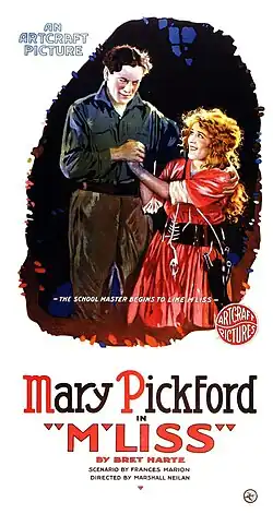 M'Liss is a 1918 American silent comedy drama film directed by Marshall Neilan, written by Frances Marion and based on a Bret Harte story. The film was made previously in 1915 and was remade again in 1922 as The Girl Who Ran Wild, starring Gladys Walton. Another same-titled remake was released in 1936, starring Anne Shirley.[1][2]