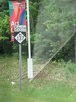 M-137 was a state trunkline highway in the US state of Michigan that served as a spur route to the Interlochen Center for the Arts and Interlochen State Park. It started south of the park and ran north between two lakes in the area and through the community of Interlochen to US Highway 31 (US 31) in Grand Traverse County. The highway was first shown without a number label on maps in 1930 and labeled after an extension the next year. The highway's current routing was established in the 1950s. Jurisdiction of the roadway was transferred from the Michigan Department of Transportation (MDOT) to the Grand Traverse County Road Commission in June 2020, and the highway designation was decommissioned in the process; signage was removed by August 2020 to reflect the changeover.