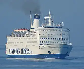 MS Rigel III is a cruiseferry owned by the Greek-based company Ventouris Ferries. She was built in 1979 as MS Turella by Wärtsilä Turku shipyard, Finland for SF Line for use in Viking Line traffic. In 1988 she was sold to Stena Line, becoming MS Stena Nordica. In 1996, she was transferred to Lion Ferry and was renamed MS Lion King. In 1998, she was sold to Tallink and renamed MS Fantaasia. As Fantaasia she also sailed under charter to Algérie Ferries, Comanav and Kystlink during the years 2005–2008. Following the end of her charter to Kystlink in 2008 the latter company bought her, renaming her MS Kongshavn. After Kystlink was declared bankrupt in late 2008 the ship was laid up until sold to the Croatia-based ferry operator Blue Line International,[4] and operated on their service between Split and Ancona as MS Regina della Pace. In 2017 the ship was sold to the Greek-based company Ventouris Ferries and is currently operating on the route Bari–Durrës.