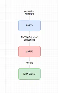 In bioinformatics, MAFFT (multiple alignment using fast Fourier transform) is a program used to create multiple sequence alignments of amino acid or nucleotide sequences. Published in 2002, the first version used an algorithm based on progressive alignment, in which the sequences were clustered with the help of the fast Fourier transform.[2] Subsequent versions of MAFFT have added other algorithms and modes of operation,[3] including options for faster alignment of large numbers of sequences,[4] higher accuracy alignments,[5] alignment of non-coding RNA sequences,[6] and the addition of new sequences to existing alignments.[7]